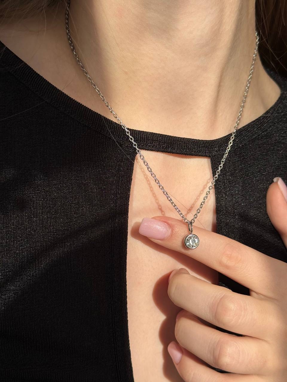 Матеріал нержавіюча сталь Довжина: 42-50 см З однієї сторони кулончик гладенький, з іншої має камінчик