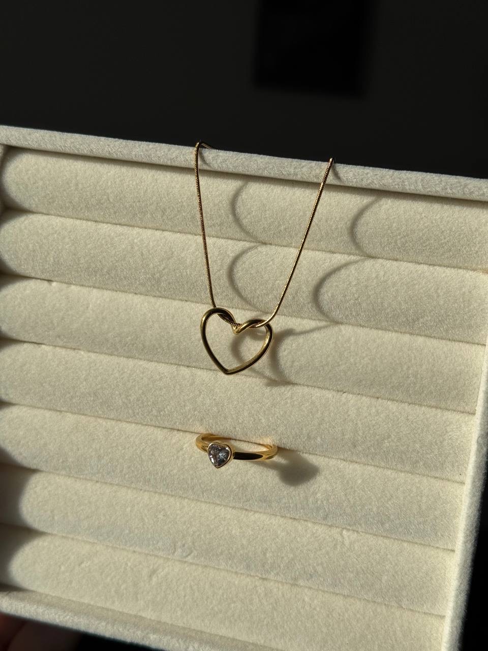 Матеріал каблучки: медичне золото Матеріал сережок та ланцюжка: нержавіюча сталь