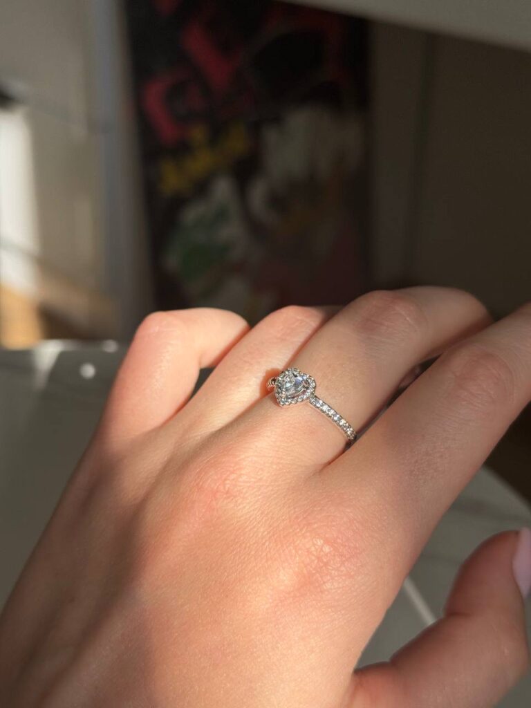 Срібна каблучка з білим серцем