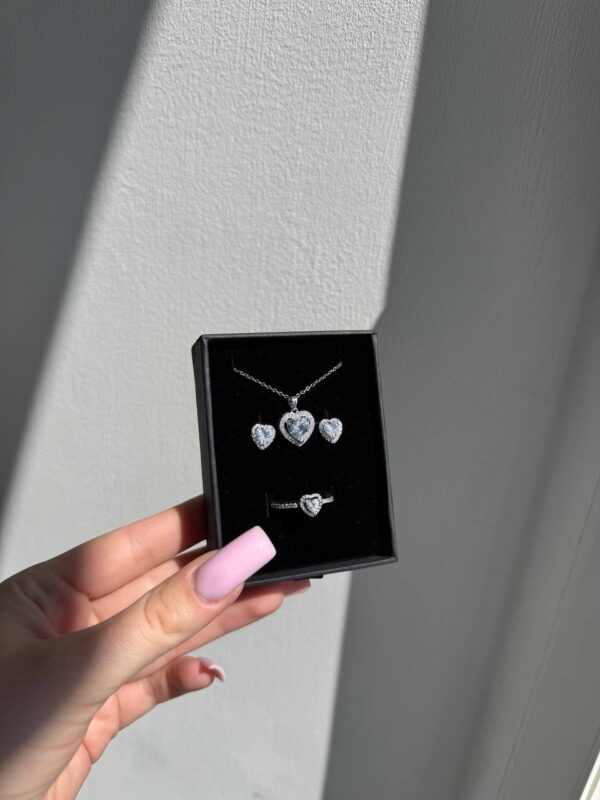 Набір прикрас з білим серцем у срібному кольорі