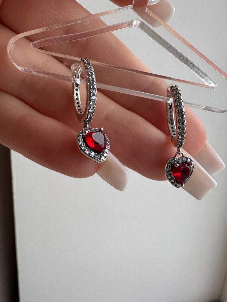 Сережки з червоним серцем